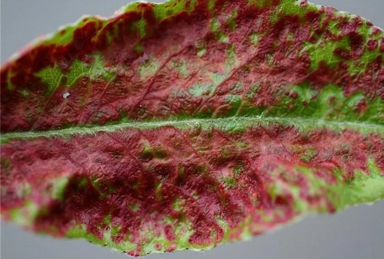 Die genannten Schäden werden durch winzig kleine Gallmilben (Phytoptes pyri) verursacht, die mit bloßem Auge nicht erkennbar sind.