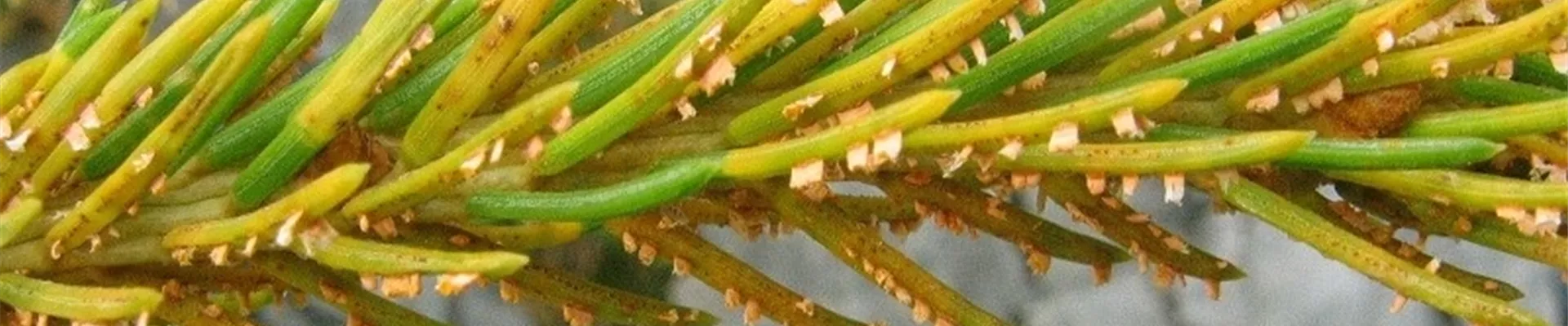 An Tannen- und Fichtennadeln können eine ganze Reihe von Pilzen zu Schäden führen. Die Nadeln werden gelb oder bekommen gelbe bis braune Flecken.