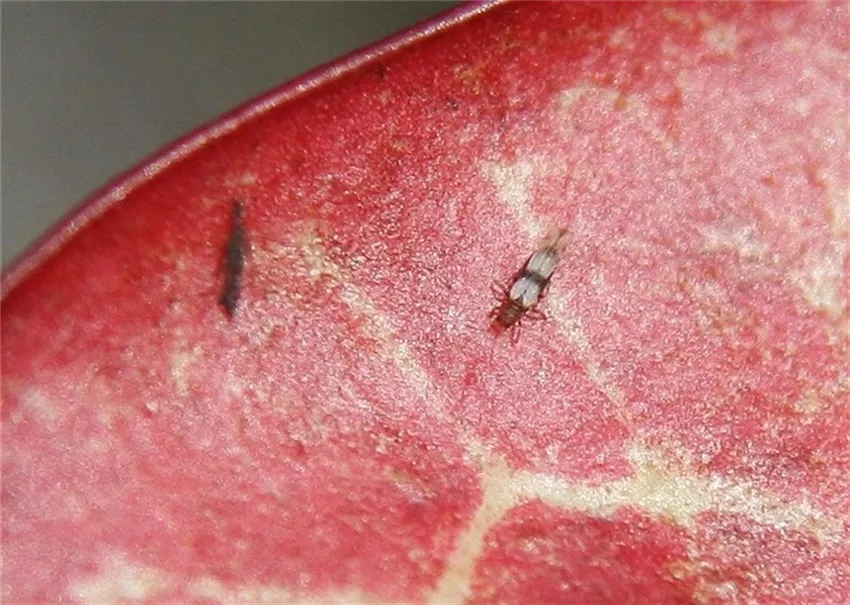 An Zimmerpflanzen kommt häufig der Drazänenthrips (Parthenothrips dracaenae) vor. Sowohl die Larven als auch die geflügelten erwachsenen Tiere saugen Zellsaft. Durch diese Saugtätigkeit entsteht die beschriebene nadelstichartige Sprenkelung.