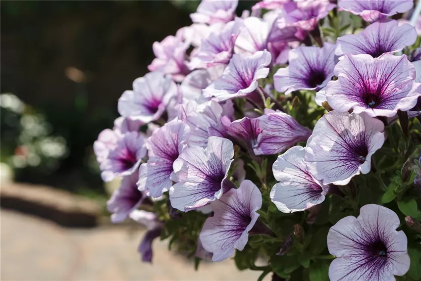 Grundsätzlich bieten sich Petunien als Begleitpflanzen für Geranien an. Die beiden vertragen sich gut, stehlen sich aber mit ihrem imposanten Flor auch gegenseitig die Schau. Abhilfe schafft ein kleiner Trick. Man kombiniert sie mit Blumen, die ganz anders auftreten, entweder in der Blüte oder in der Wuchshöhe. So findet ein Ausgleich statt, der auf den Betrachter harmonisch wirkt. Verbenen und Vanilleblumen machen diesen Job gut und verbreiten dazu noch zarten Duft. Gute Begleitpflanzen für Geranien sind weiterhin das reizende Zauberglöckchen, der zarte Zauberschnee und das aparte Blaue Gänseblümchen. Auch das niedrig bleibende Männertreu spielt die Vermittlerrolle prima, ebenso wie das Kapkörbchen mit seinem strahlenförmigen Blütenkranz.