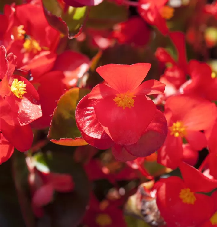 Ihre lange Blütezeit, die Zierlichkeit der Kronblätter und ihre asymmetrischen, meist eiförmigen Blätter charakterisiert die brasilianische Art Begonia semperflorens. Diese Begonien besitzen grünes bis rötliches Laub und umfassen Vertreter weißer bis roter Blütenfarbe. Ihre Blätter brechen schnell, weshalb sie auch den Namen Eis-Begonie tragen. Ihre Wuchshöhe beträgt maximal dreißig Zentimeter.